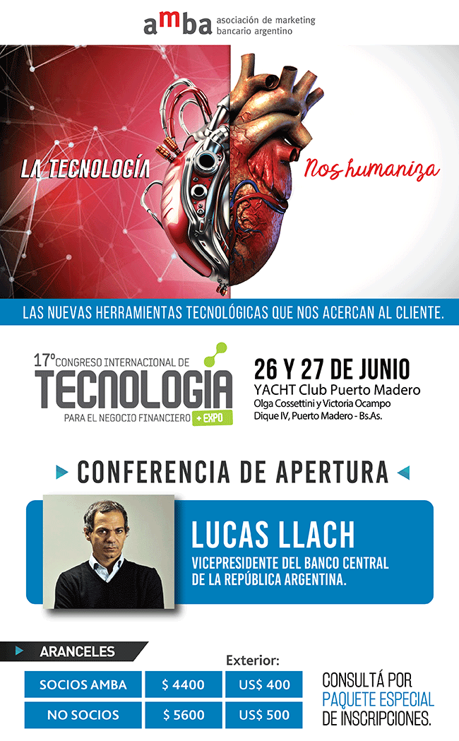 Organizado por AMBA (Asociación de Marketing Bancario Argentino), estas exposiciones y temáticas están pensadas para el interés de las áreas de tecnología, sistemas, seguridad y negocios, con un contenido académico abarcará temas de actual interés y la presentación de casos concretos en instituciones financieras; como así también tendencias de la industria, desde el punto de vista de negocios y tecnología. Al igual que en ediciones anteriores, además de contar con conferencias plenarias, las empresas proveedoras del sector presentarán sus nuevos productos y servicios a través de las sesiones simultáneas y de los Contact Points que se instalarán en el sector de la expo comercial.
