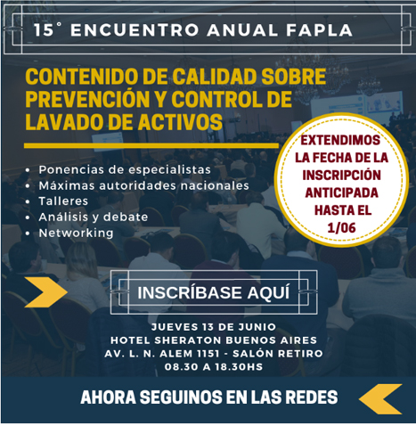 INVITACIÓN AL XV ENCUENTRO ANUAL DE FAPLA (FUNDACIÓN ARGENTINA PARA EL ESTUDIO Y EL ANÁLISIS SOBRE LA PREVENCIÓN DEL LAVADO DE ACTIVOS Y FINANCIACIÓN DEL TERRORISMO)