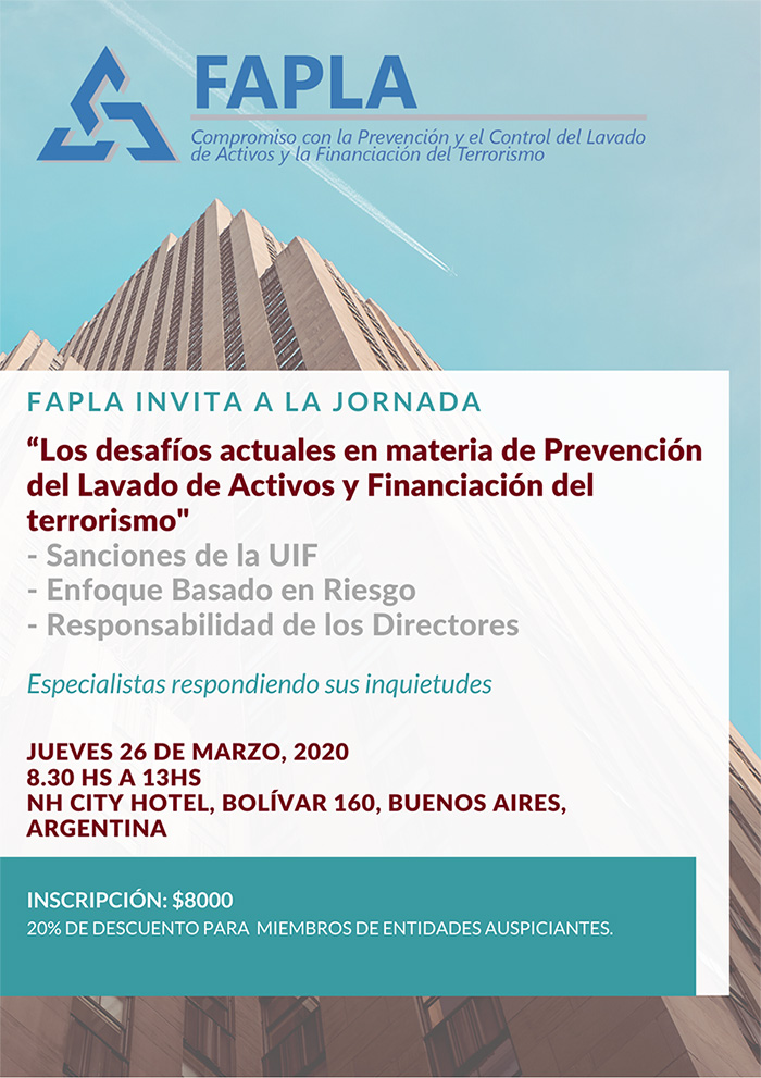 INVITACIÓN. JORNADA SOBRE NORMATIVA ANTILAVADO EN ARGENTINA 2020. ORGANIZADO POR FAPLA