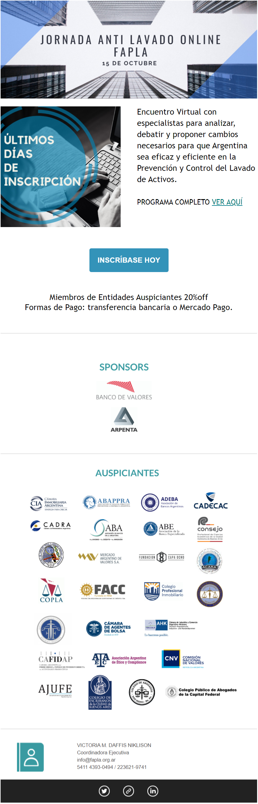 AUSPICIAMOS LA JORNADA ANTI LAVADO ON LINE DE FAPLA